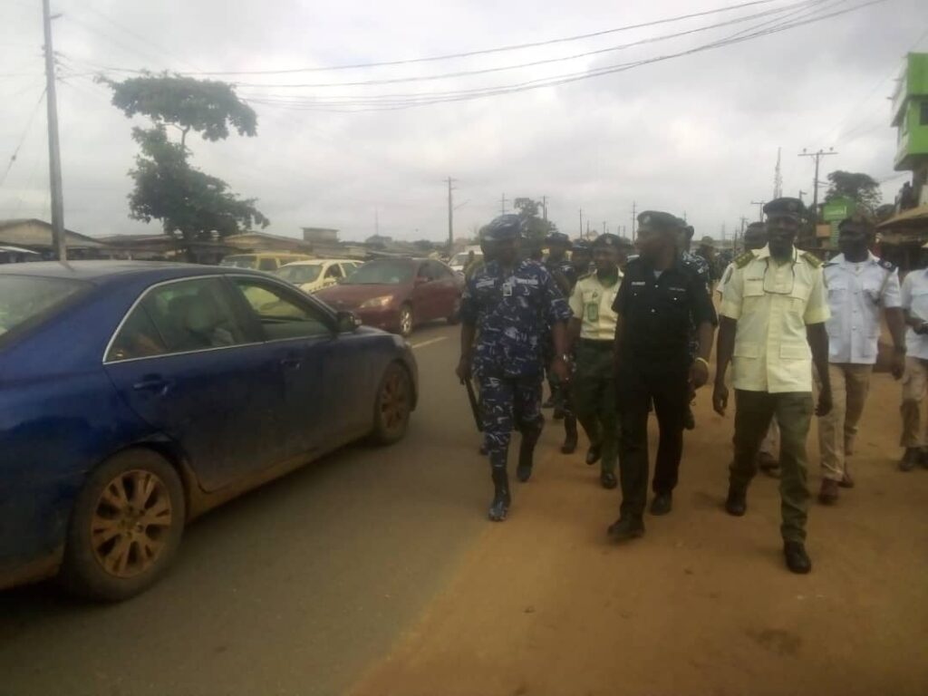 Today, The DPO Ogijo Divisional Command, CSP OLATUNDE AWODE, Led other Security and Safety Agencies such as N Army, TRACE, Environmental Officers, Health Officers, VGN, VSO, So Safe, Onyabo Vigilante group were at ItaOluwa,along Sagamu-Ogijo-Ikorodu road to sensitize and warn against indiscriminate parking and obstruction of public roads by Commuters, Tricycle riders, Okada riders and the petty traders to allow free flow of traffic around ItaOluwo and it’s environs, desist from displaying their wares on the foot and the median of the road