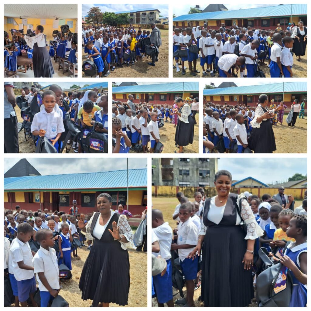 The public school tour that began at the 3rd Avenue Nursery and Primary School yesterday, September 18, 2023, will also cover more schools in the course of the week, and many gift items, including school bags, books, and other stationery, are in place to be given out. This was done to all, irrespective of tribe and religion.