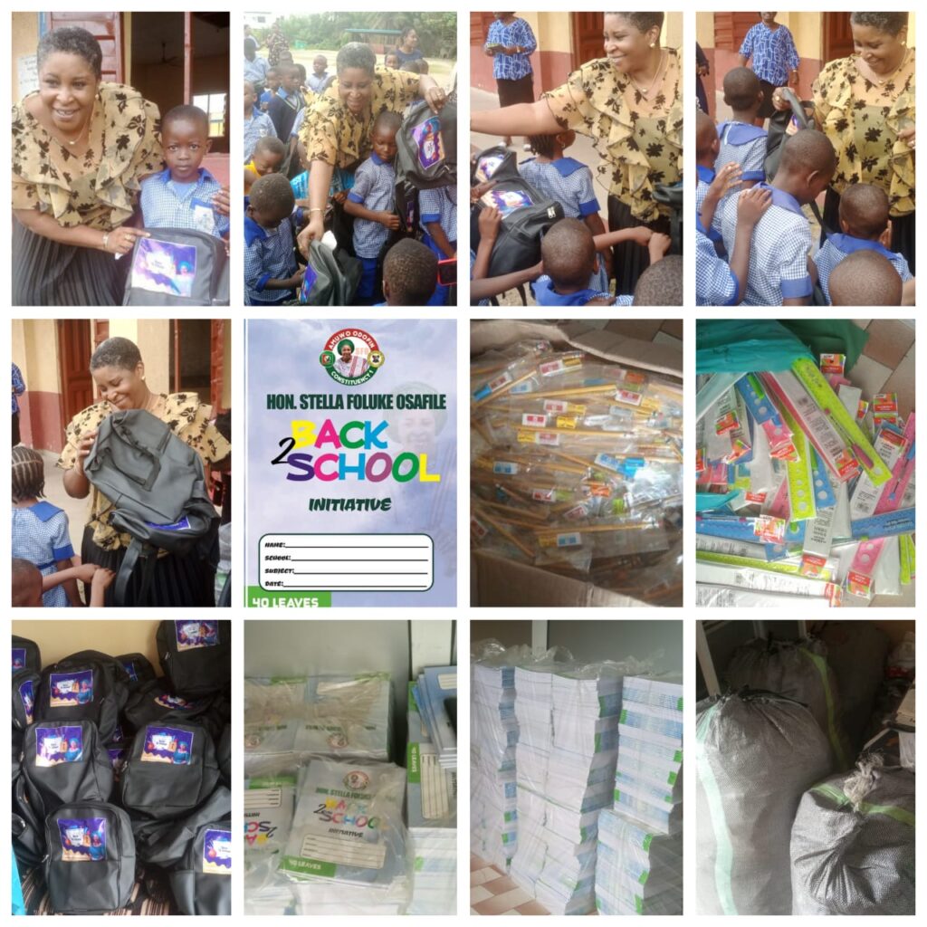 The hon. representing Amuwo Odofin constituency 1 at the Lagos Assembly, Mrs. Foluke Stella Osafile, began a tour across public schools in her constituency to mark her 100 days in office as a means to relieve parents of the current economic burdens as pupils began to return to school.