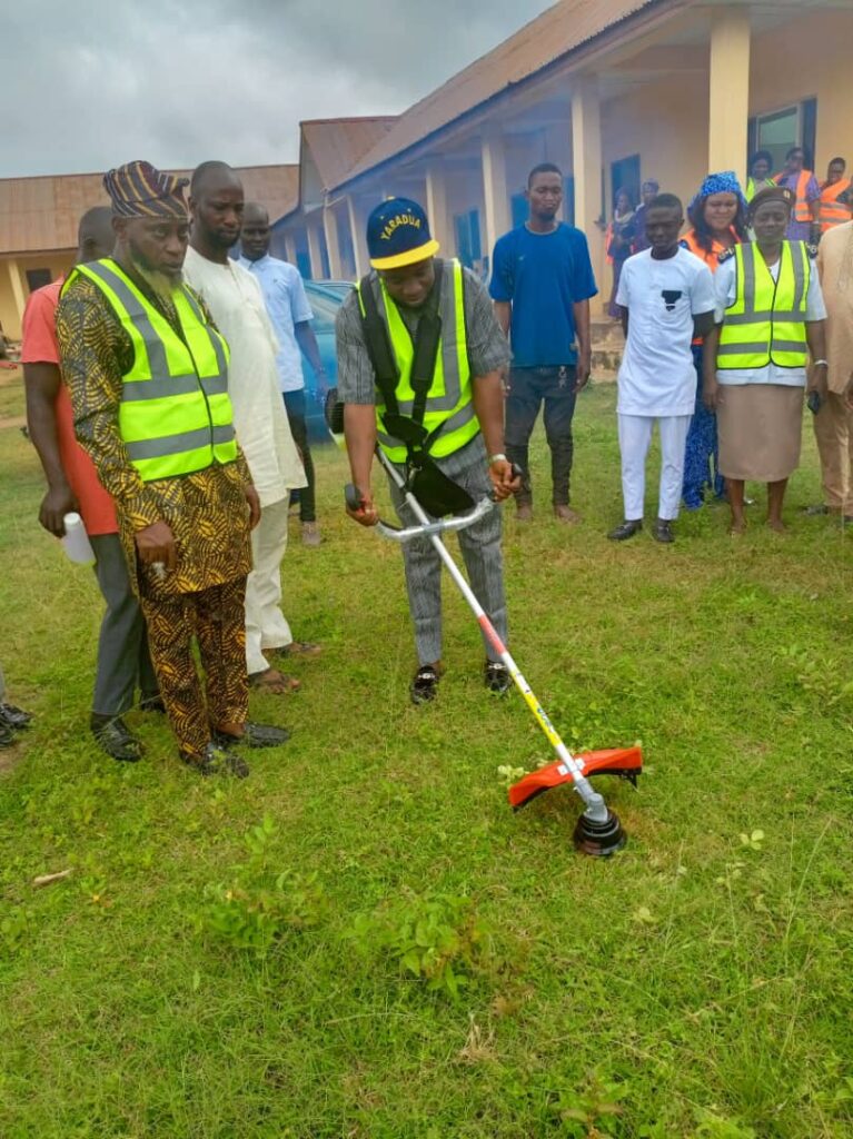 The Caretaker Chairman of Irepodun South LCDA Erin Osun, Hon. Sulaimon Wasiu Kayode (Yar’adua) today mark a remarkable initiative that promises to alleviate the challenges faced by our young pupils when it comes to clearing of school environment.