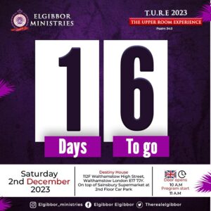 The anticipation is building as the clock counts down to one of the most awaited events of the year – The Upper Room Experience (T.U.R.E 2023). With just 16 days left, excitement is palpable as attendees prepare for a transformative day on Saturday, December 2nd, 2023, starting at 10 AM UK time. The venue for this extraordinary event is Destiny House, located at 112F Walthamstow High Street, London, E17 7JY.