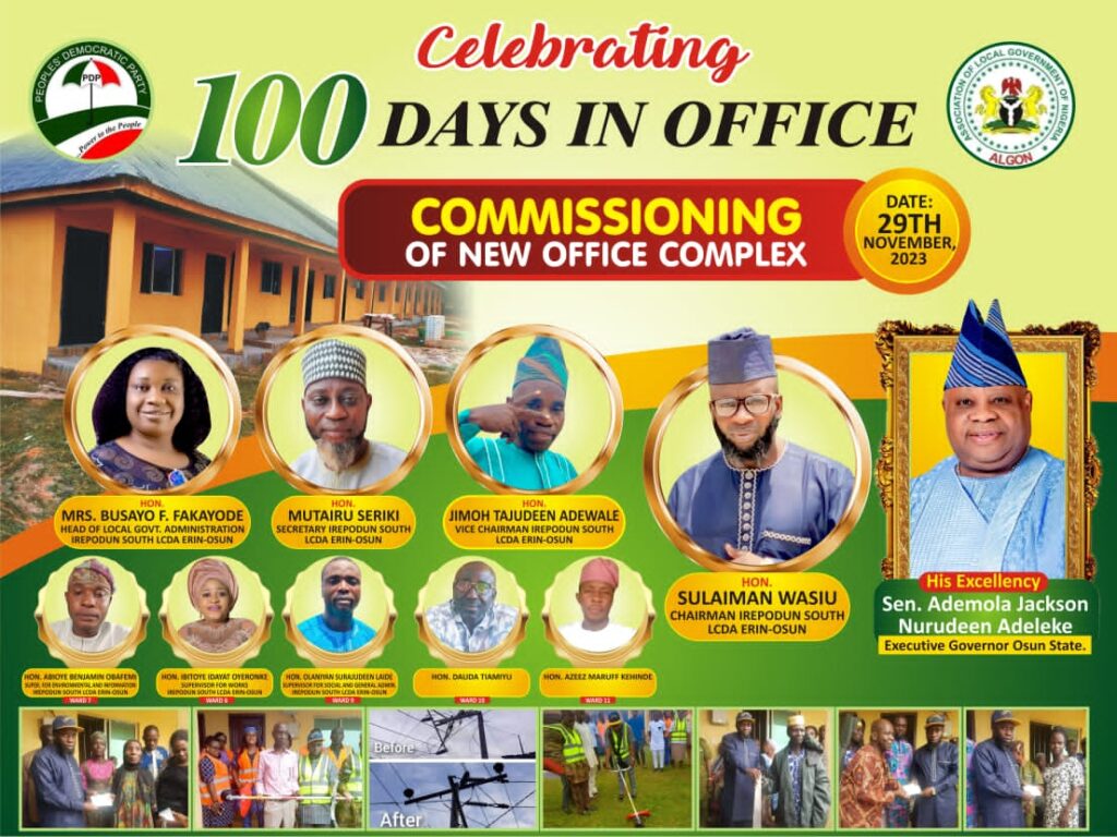 The reflection of my first 100 days in office as the local government chairman of Erin Osun, dividends of democracy and importance of good governance becomes more evident. Within this timeframe, my utmost priority is to establish a government that is transparent, accountable, and responsive to the needs and aspirations of the people.