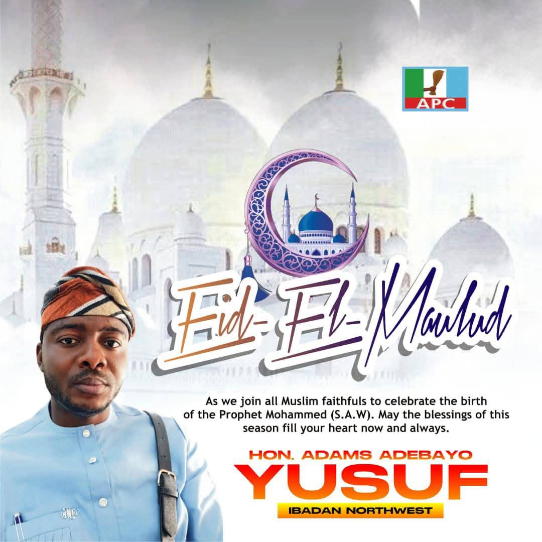 A chieftain of the All Progressives Congress (APC) in Ibadan North West, Hon. Adams, has felicitated with Muslims across Nigeria on the occasion of this year’s Eid-El-Maulud, urging them to embrace unity, peace, and tolerance.