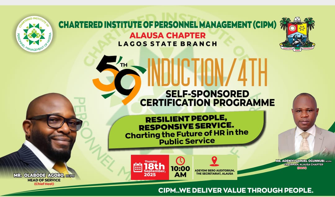 The Chartered Institute of Personnel Management of Nigeria (CIPM), Alausa Chapter – Lagos State Branch, has announced plans to host its 59th Induction and 4th Self-Sponsored Certification Programme.