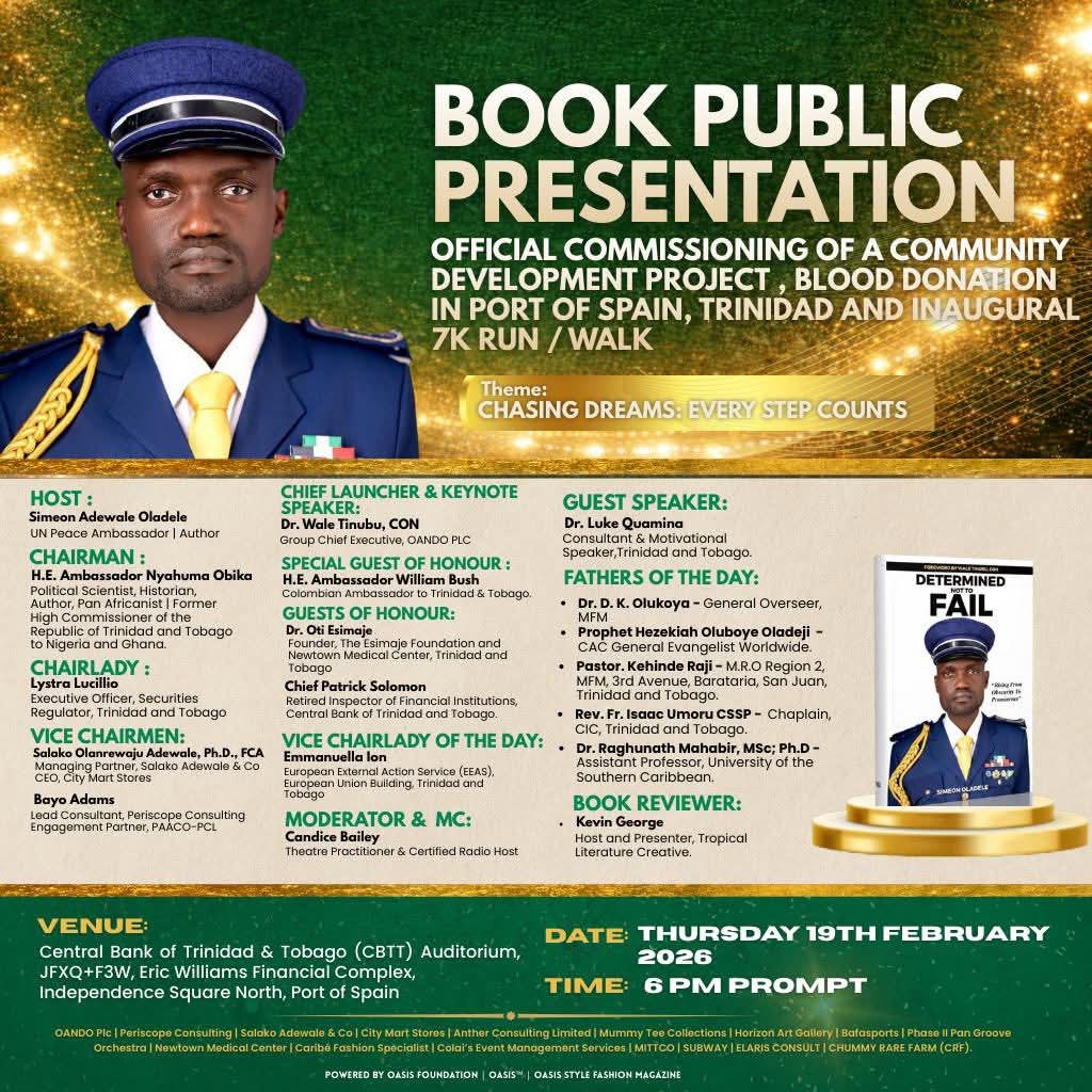 World Leaders to Converge in Port of Spain for Simeon Adewale Oladele’s Landmark Book Presentation