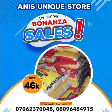 December 19, 2023December 19, 2023Olalekan Efficient Breaking News: Get your Nigeria Rice for 46 Thousand Naira At ANIS UNIQUE STORE.