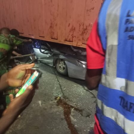 September 25, 2023September 25, 2023Olalekan Efficient Pic: Another 40ft Container Tanker fell on Toyota Corolla at Ojuelegba Lagos State.