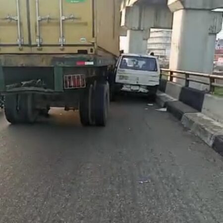 LASTMA APPREHEND DRIVER OVER DAMAGED TRUCK BARRIER AT DORMAN-LONG BRIDGE, SURULERE, LAGOS.